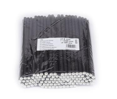 Slamky rovné papierové 20cm 8mm čierne 100ks